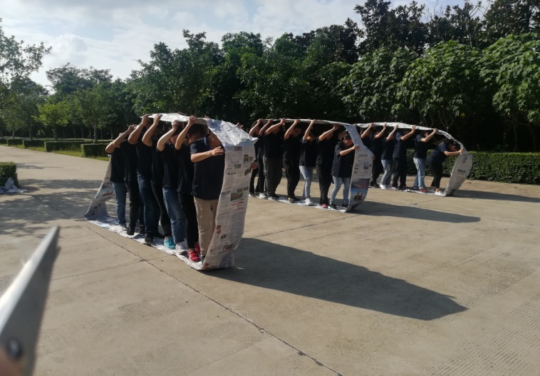 項(xiàng)目一“有軌電車”。培養(yǎng)員工團(tuán)結(jié)一致,密切合作,克服困難的團(tuán)隊(duì)精神;培養(yǎng)計(jì)劃、組織、協(xié)調(diào)能力;培養(yǎng)服從指揮、一絲不茍的工作態(tài)度;增強(qiáng)隊(duì)員間的相互信任和理解,像坦克軍團(tuán)一樣向著目標(biāo)前行。